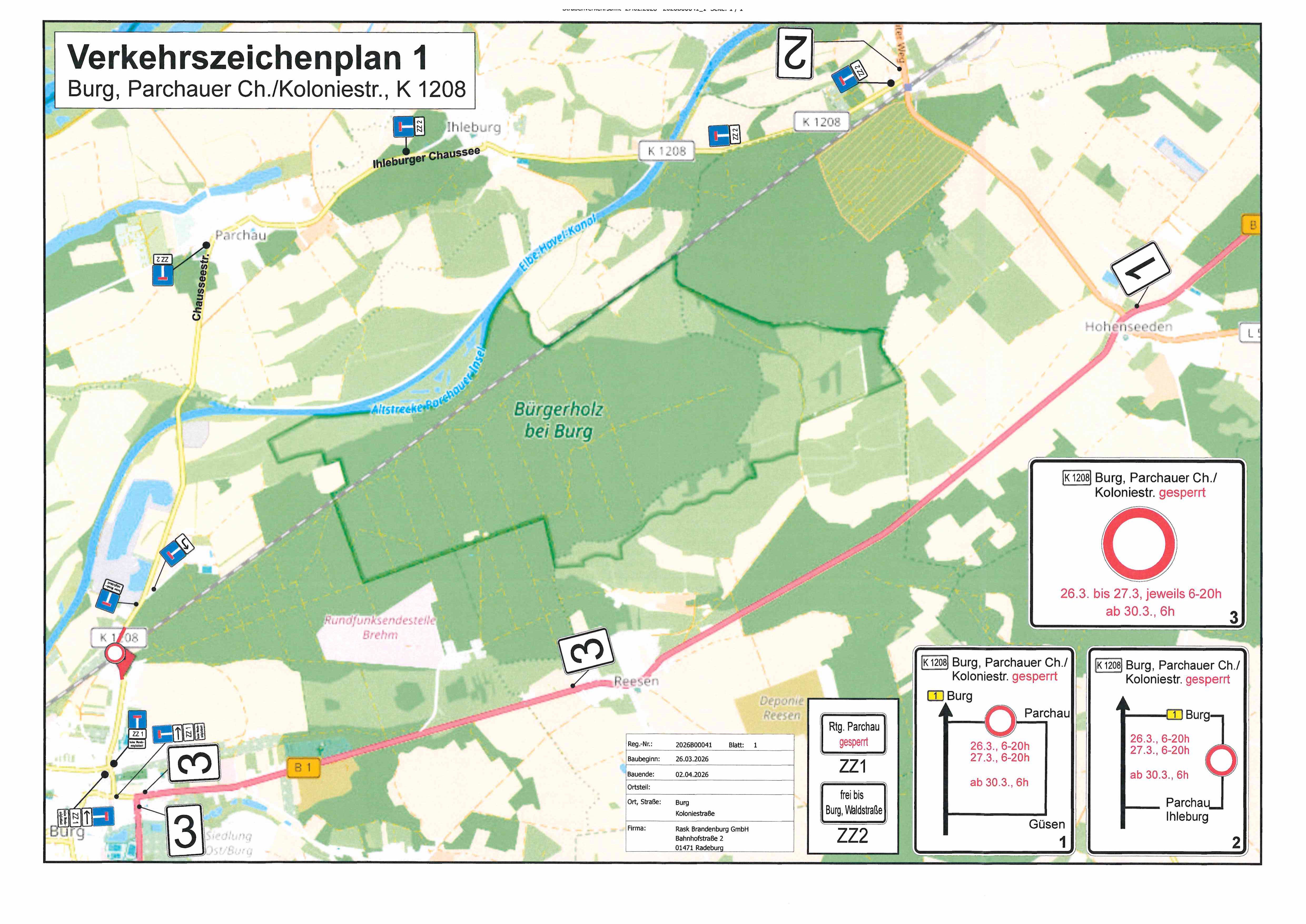 🚧 Straßensperrung in Burg – Koloniestraße / Parchauer Chaussee