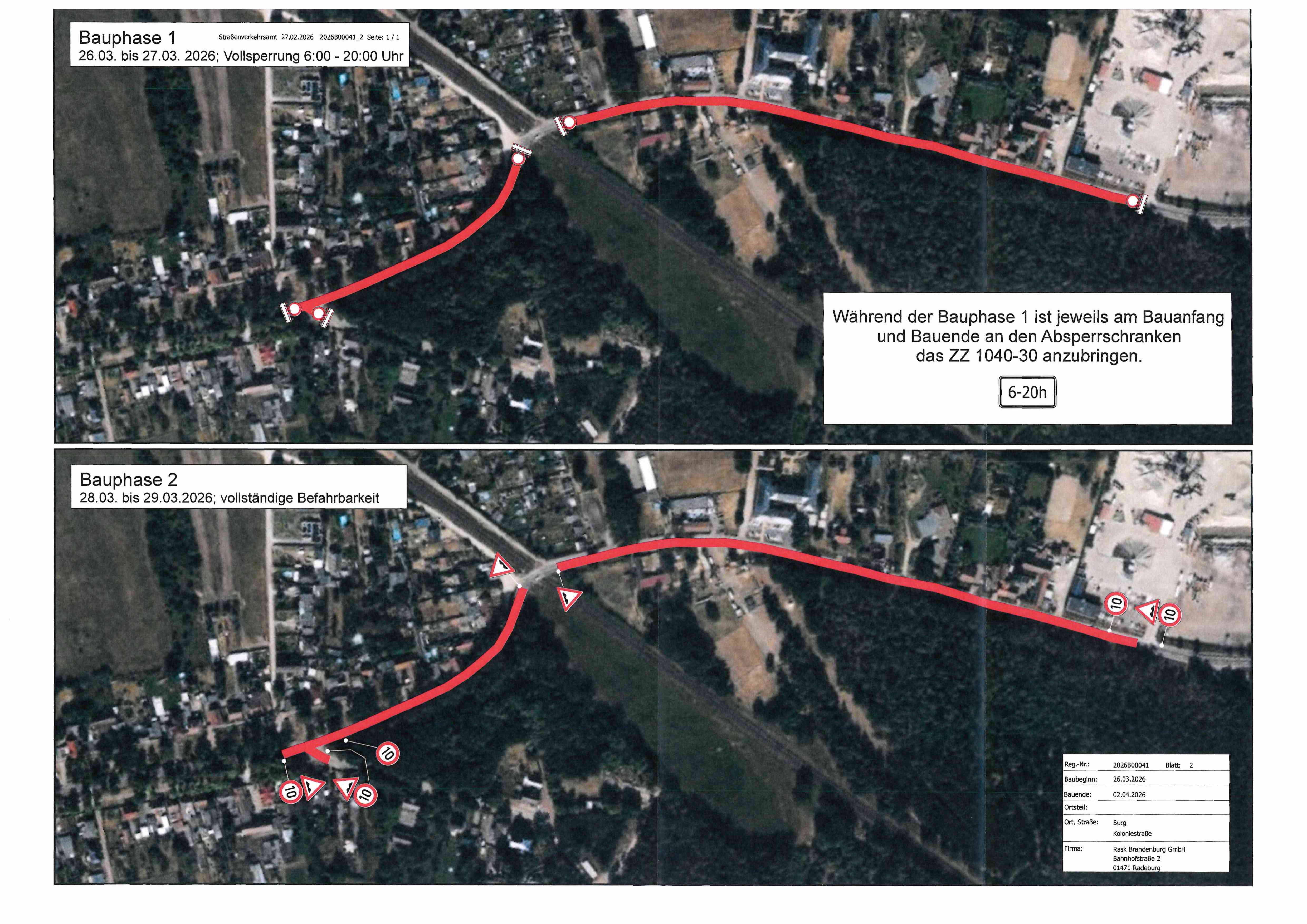 • 26.–27.03. Vollsperrung von 6–20 Uhr