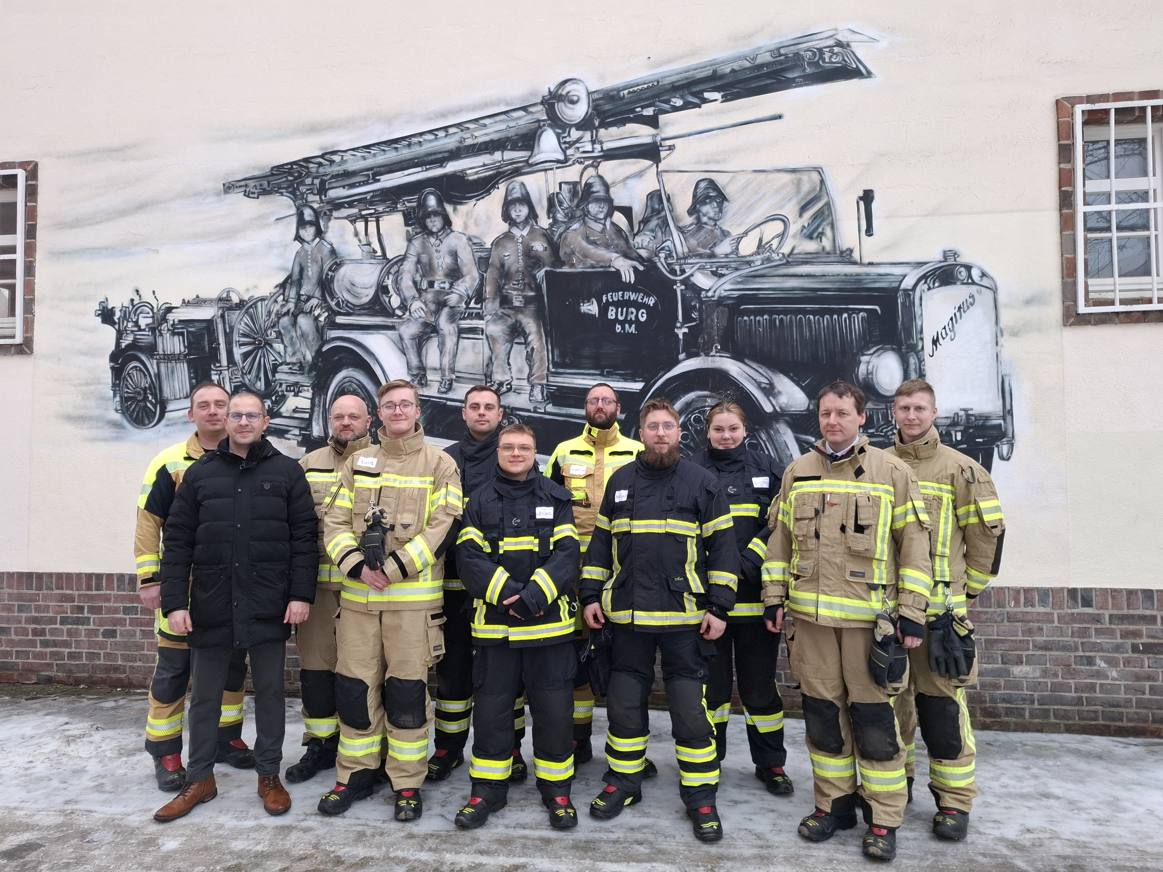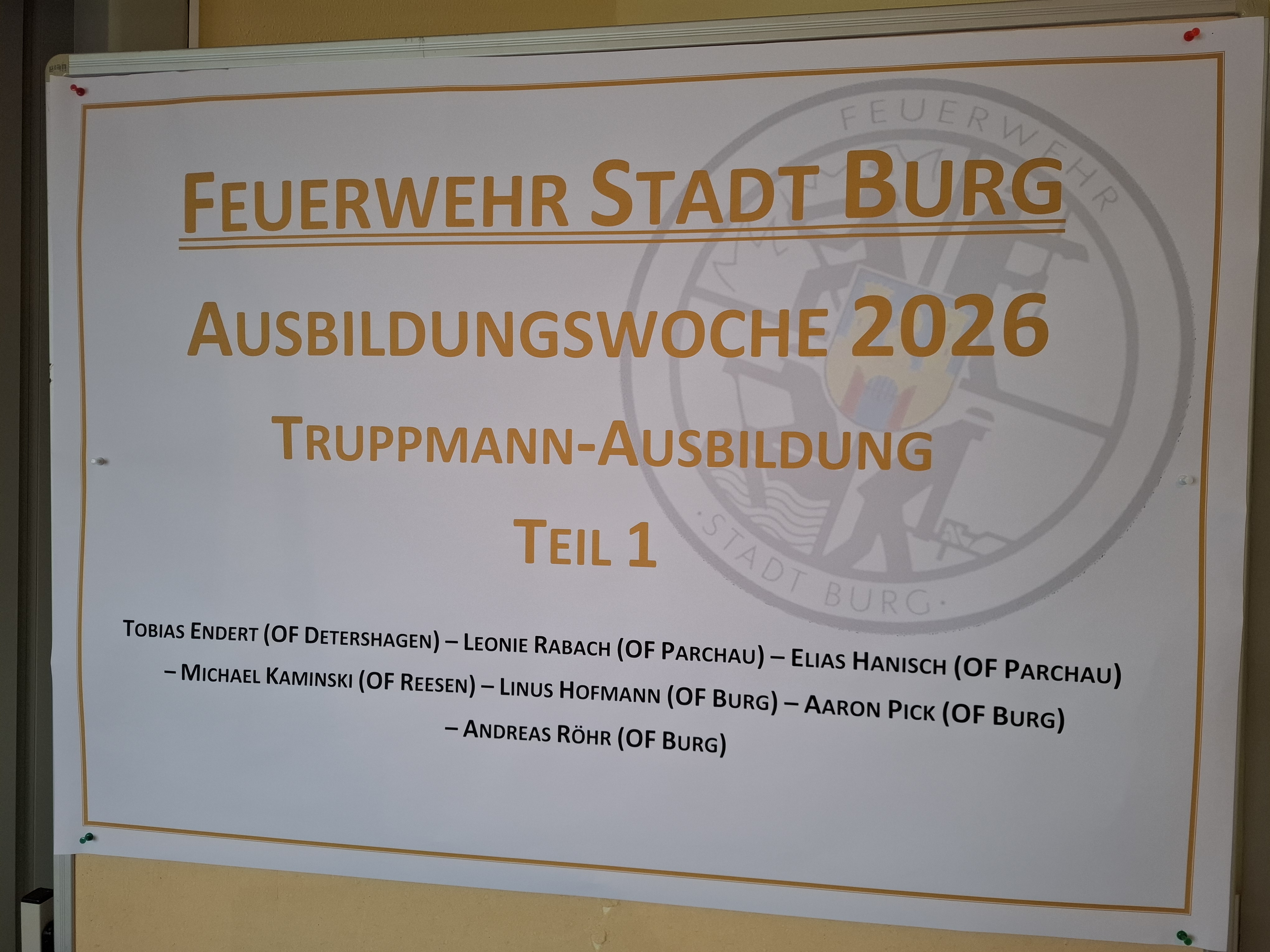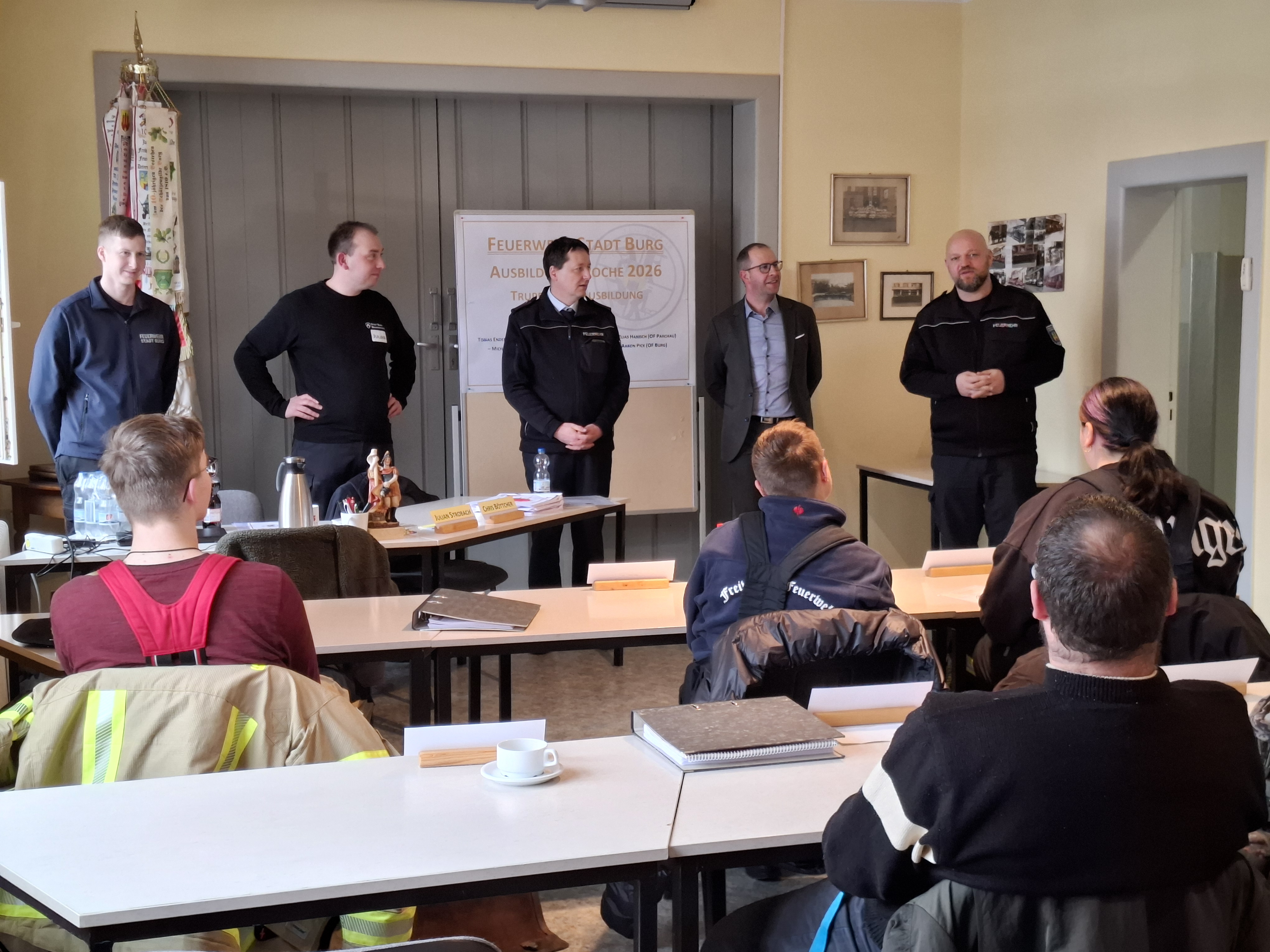 Burg | Die zentrale Ausbildung zum Truppmann Teil 1, der Freiwilligen Feuerwehr Stadt Burg nahm am Freitag ein erfolgreiches Ende. Sieben Mitglieder der Ortsfeuerwehren der Stadt Burg stellten sich dabei einer einwöchigen Grundausbildung und absolvierten ihre ersten 40 von 72 Ausbildungsstunden zum Truppmann. Und dabei nahmen sie eine ganz ungewohnte Hürde, denn die Ausbildung war in diesem Jahr deutlicher an das Einsatzgeschehen in der Stadt orientiert und legte den Focus auf die Verzahnung der einzelnen Ortsfeuerwehren bei Einsätzen.
