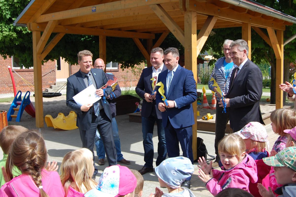 Am Donnerstag, 3. Mai 2018 fand die Übergabe von Fördermittelbescheiden in Höhe von insgesamt 1.932.377,00 Euro für die Sanierung der Kita „Regenbogen“, Kita „Käte Duncker“, Kita „Parchauer Seepferdchen“ und der Grundschule „J. H. Pestalozzi“ statt.