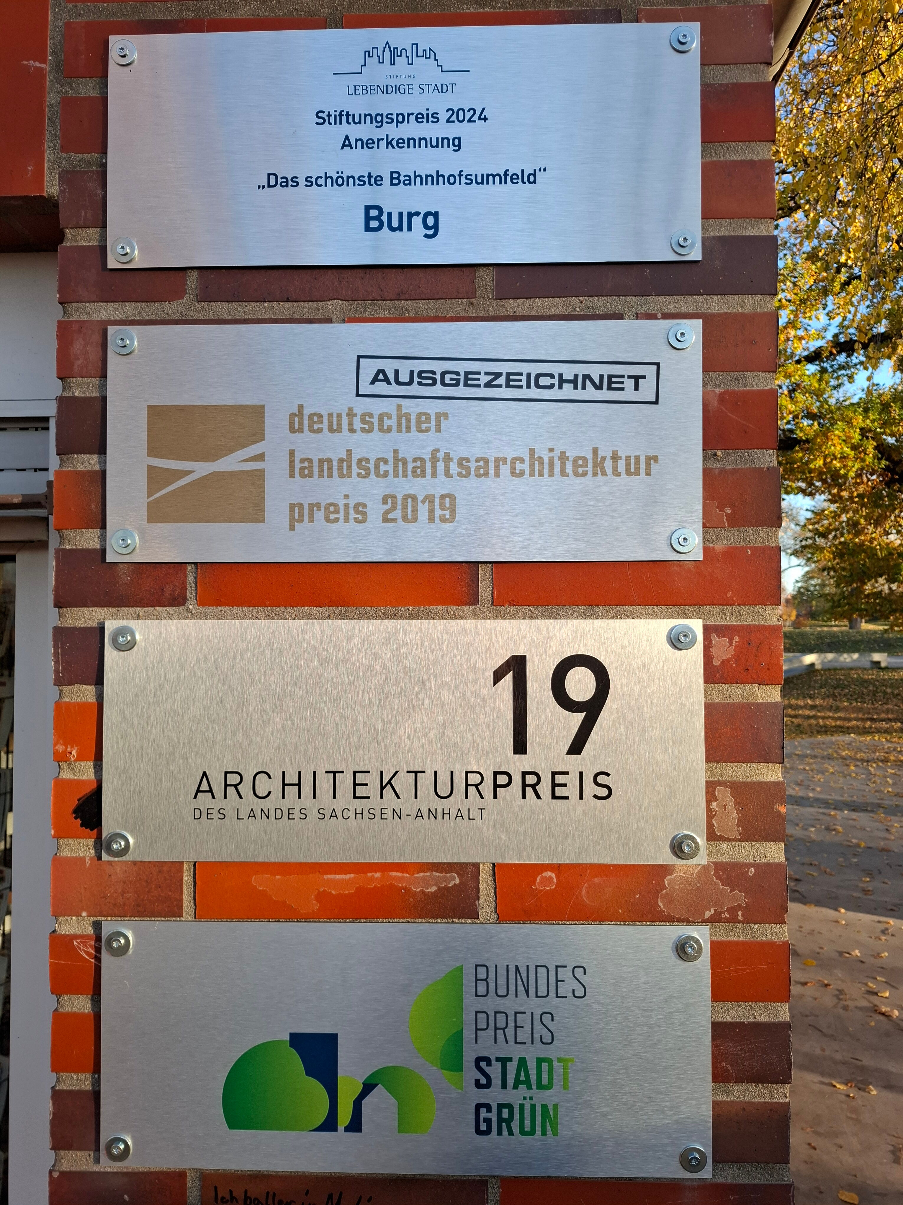 Mit dem Bundespreis Stadtgrün und dem Stiftungspreis „Anerkennung“ wurde das „schönste Bahnhofsumfeld“ in Deutschland ausgezeichnet. Mehr als 100 Projekte hatte sich für beide Preise beworben. Die Stadt Burg überzeugte jeweils.