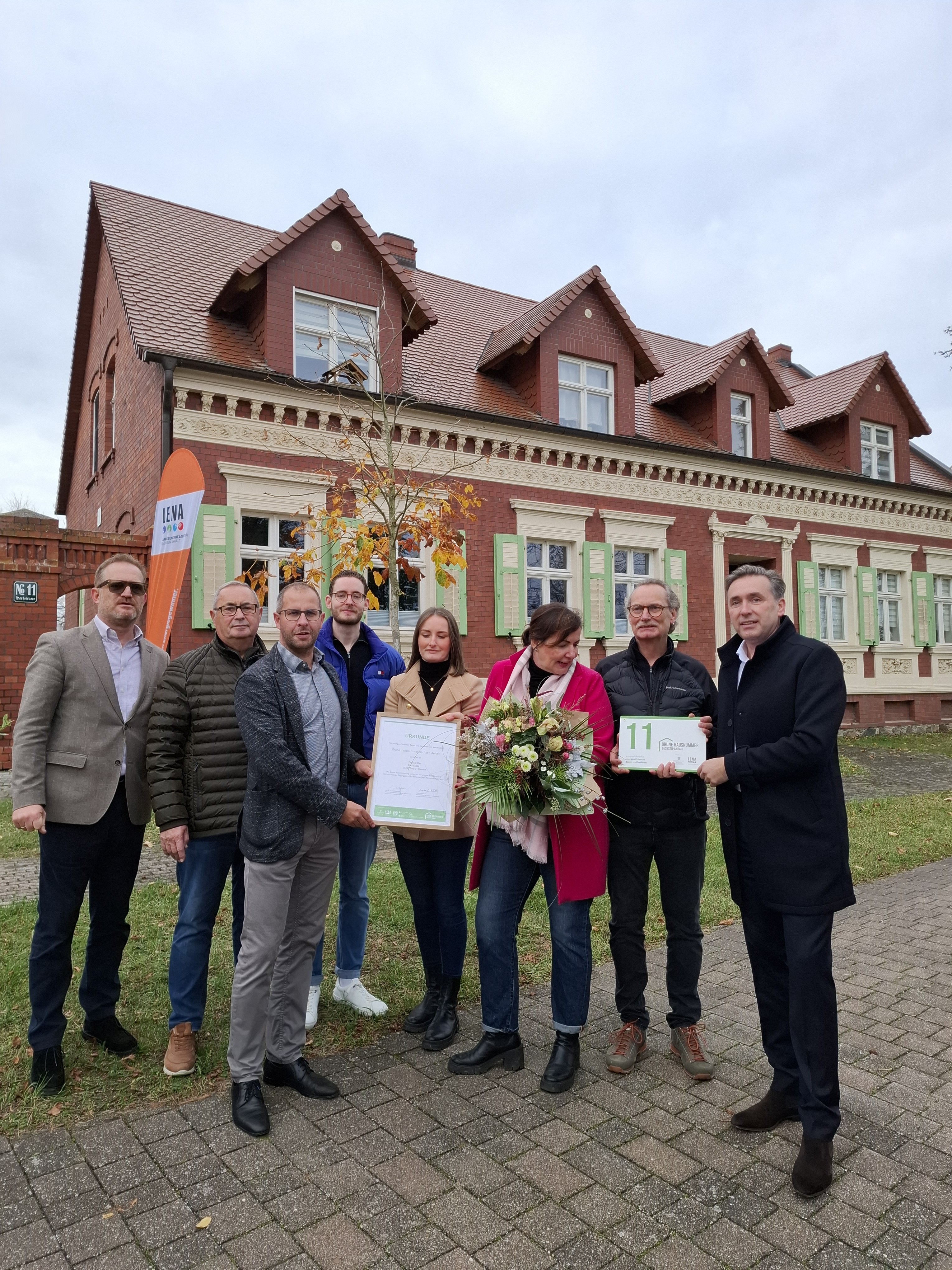 Und er ergänzte: „Dass das Gebäude nicht zum Selbstzweck auf Energieeffizienz und Ressourceneinsparungen umgerüstet wurde, trug zur Verleihung der grünen Hausnummer bei. Partizipieren so nicht nur die Eigentümer vom umweltschonenden Wohnen.“